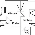 Az ingatlan rendelkezik önellátáshoz szükséges felszerelésekkel, például konyhával, valamint étkező területet biztosít. A legközelebbi buszmegálló a Zum Langenberg, amely hozzávetőlegesen egy 5 perces sétára van az ingatlantól.